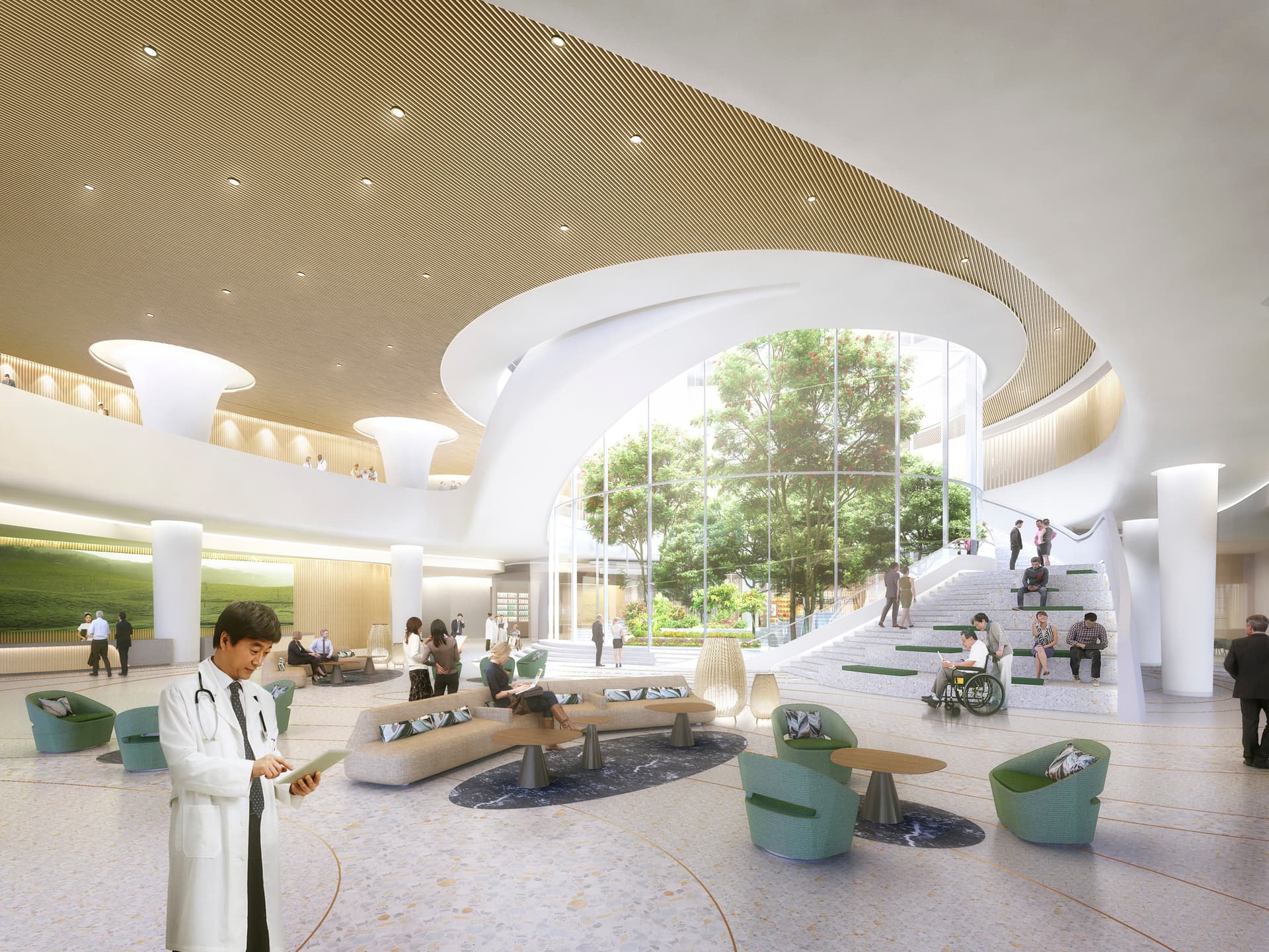 NBBJ led rigorous participatory project workshops with over 100 attendees from all partners and consultants that brought alignment and buy-in from all members of the project team—who had no prior experience working together, and the client—who had never built a hospital. The resulting medical center brings world-class, patient-centered healthcare and innovative medical research to Bangkok through a “harmonious, nourishing ecosystem” where place, culture, technology and medicine come together to nourish life through health and wellness.