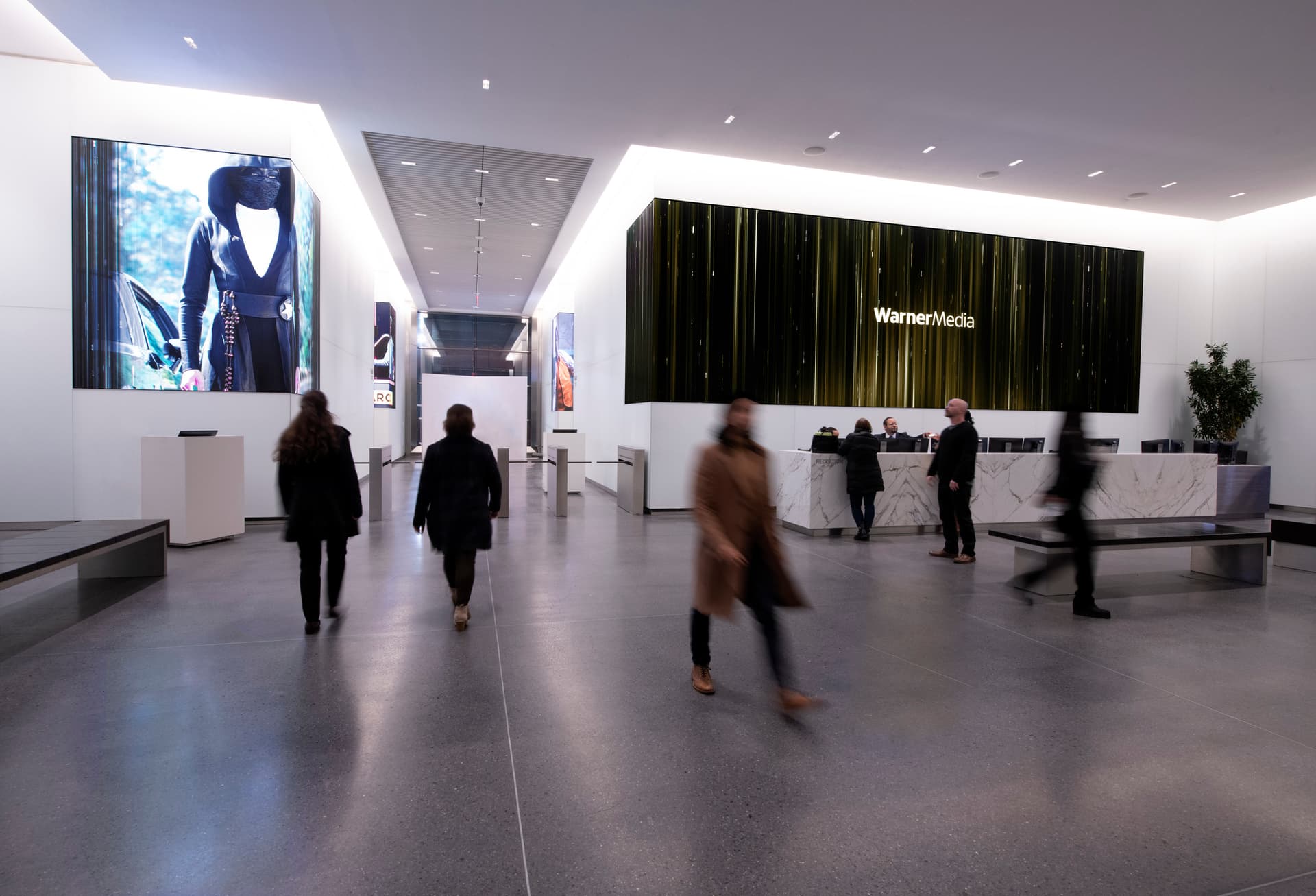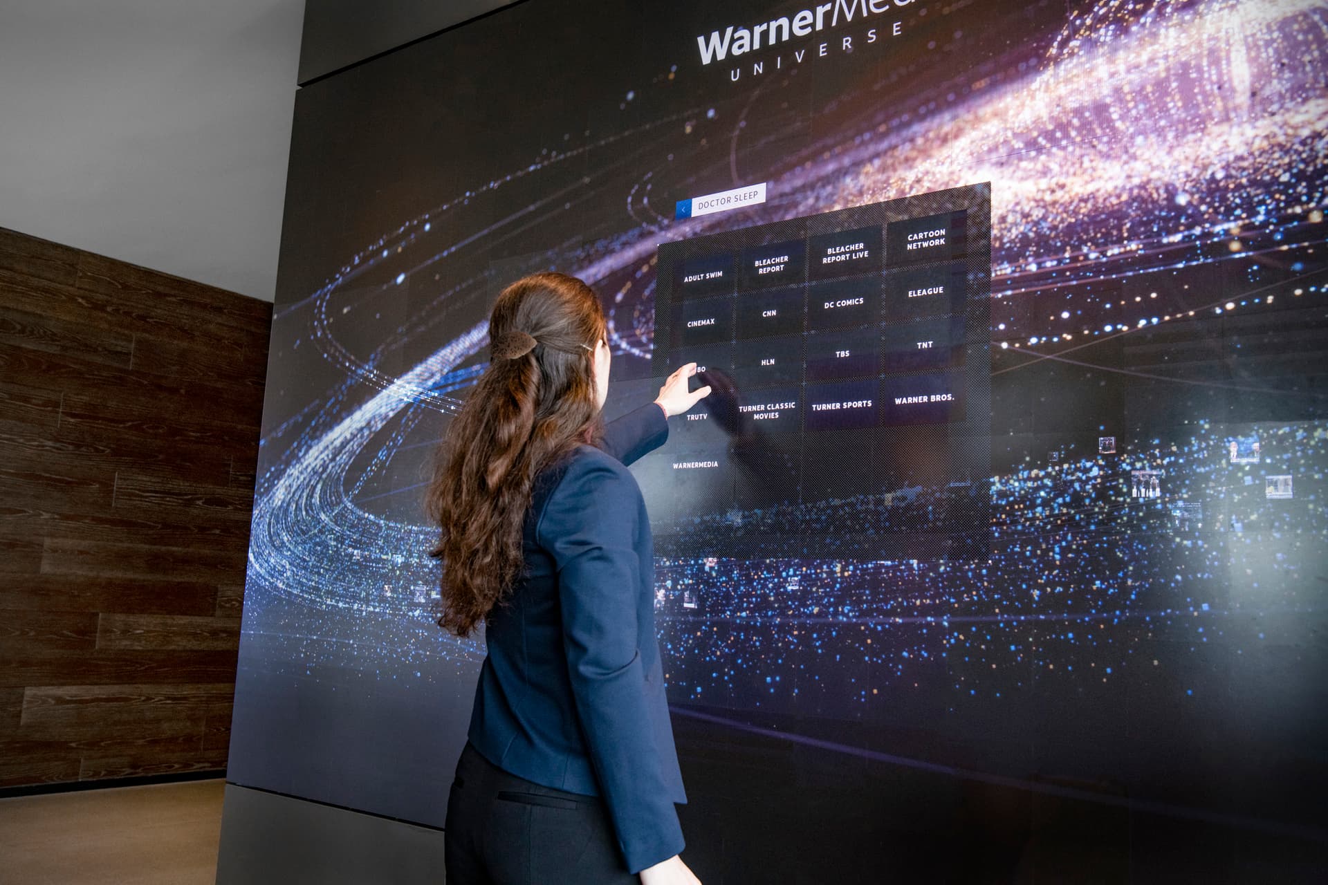 ESI Design integrated digital media across the company’s 27 floors, from the main ground floor lobby to the sky lobby, screening floors, C-suite and workspaces. A unified design language of screens wrapped around corners gives a sense of dimensionality and displays media content from the company’s vast universe of networks. With two interactive touchscreens fueled by WarnerMedia data sources, the audience is included in the brand experience.